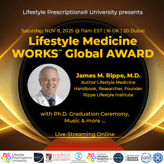© 2008-2026 Lifestyle Medicine University Foundation. All rights reserved. This website and all content are for educational purposes only and NOT intended to diagnose, treat, cure, or prevent any disease or psychological disorder. Lifestyle Medicine Summit are global trademarks of Lifestyle Medicine University Foundation. Lifestyle Prescriptions®, the Art and Science of Self-Healing, Organ-Mind-Brain Anatomy™, Lifestyle Medicine WORKS™, Clinical Lifestyle Medicine AI™, and Dr. HealthiWealthi™ AI are global trademarks of the Lifestyle Prescriptions® University and may not be used without prior approval by the Lifestyle Prescriptions® University.